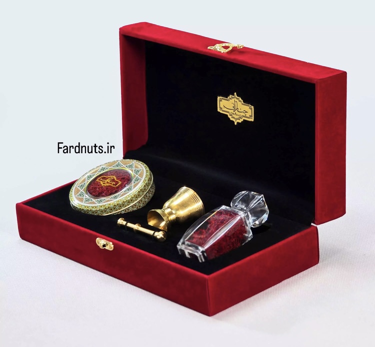 زعفران سوپر نگین 3 گرمی و زعفران آذین 3 گرمی با جعبه کادویی مخمل و هاون